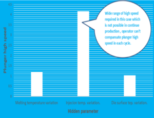 We found huge variation in filling time with respect to this filling time we found huge variation required in plunger high speed in the case of injection temperature variation. Plunger high speed adjustment in each cycle not possible, that’s why during the running production defective parts produce due to temperature variation in injection metal temperature.